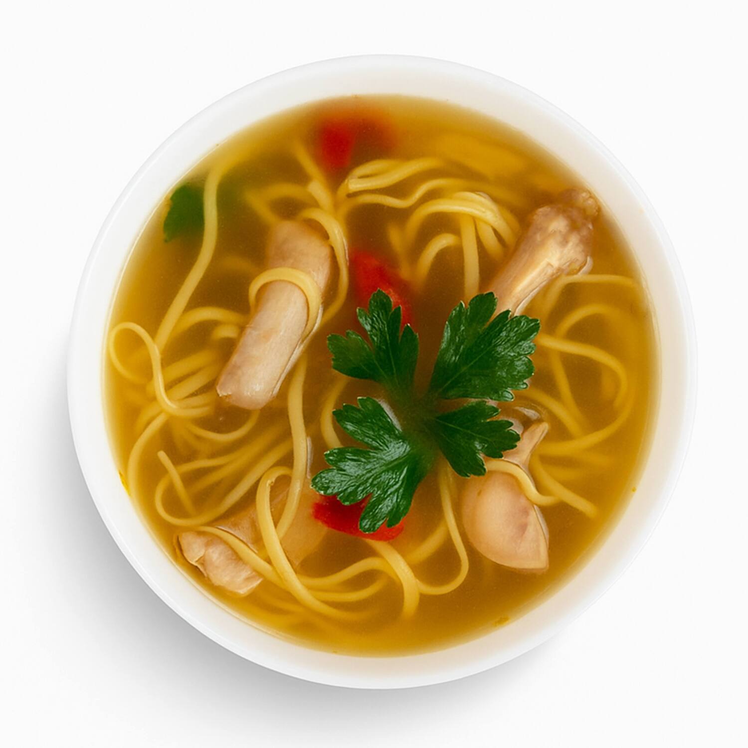 Acest preparat conține apă, pulpă de pui, borș (care conține țelină, acid citric - E330, lactat de calciu - E327 și acid lactic - E270 ca potențiatori de aromă), ardei capia, pătrunjel verde, tăiței (din făină grifică de grâu comun, grâu dur și porumb, ouă - conține gluten și ouă), morcovi, ceapă, condimente pentru pui și sare.