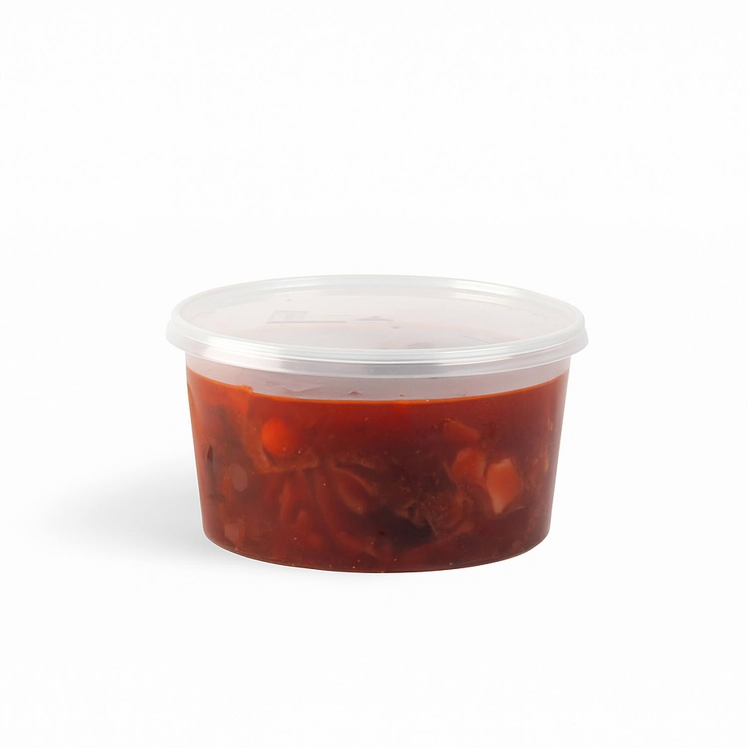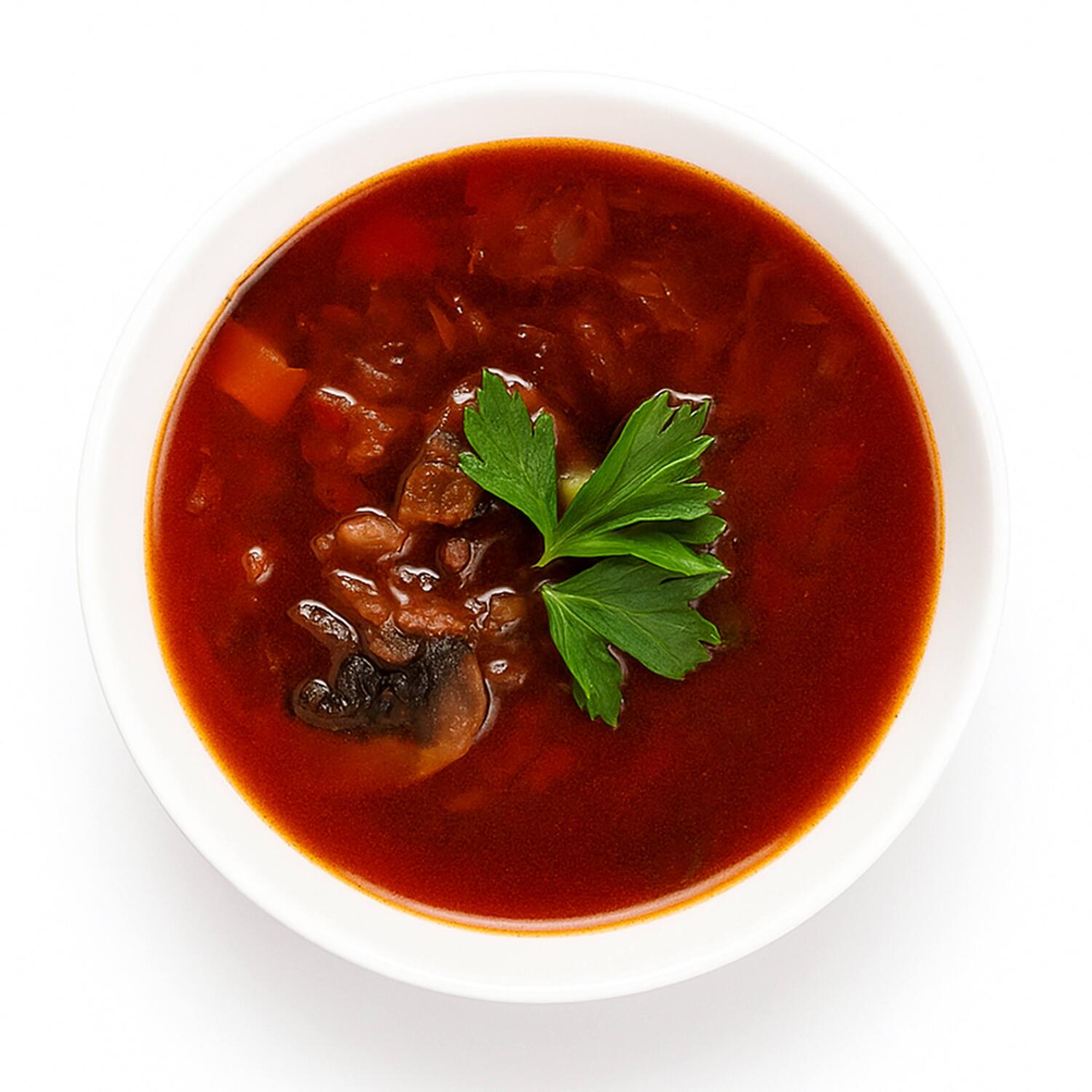 Apa, varza alba, sfecla rosie, mix de ciuperci, cartofi, ciuperci champignon, ceapa, pasta de tomate, morcovi, sos de soia, patrunjel verde, zahar, usturoi, sare.